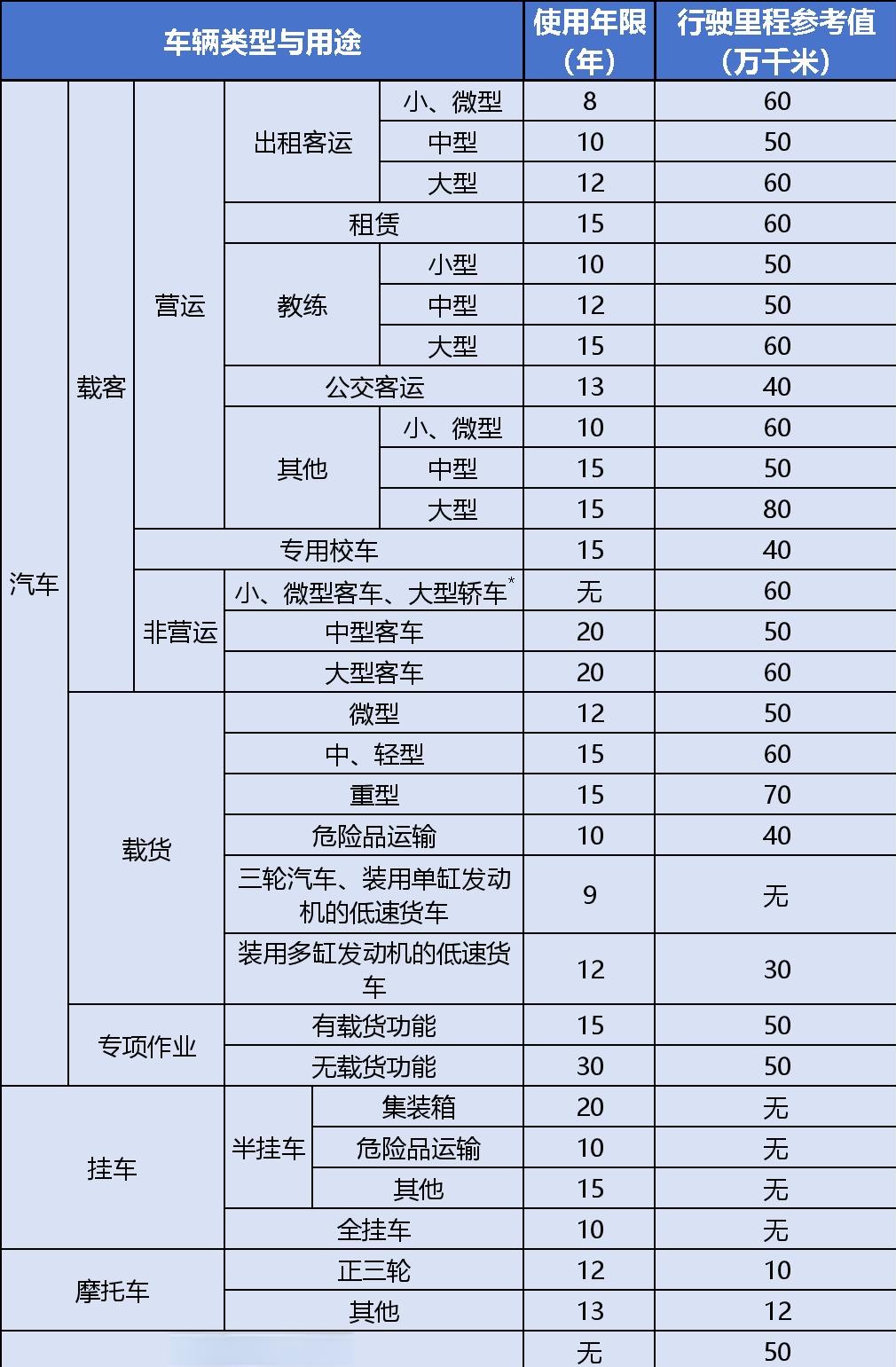机动车报废年限